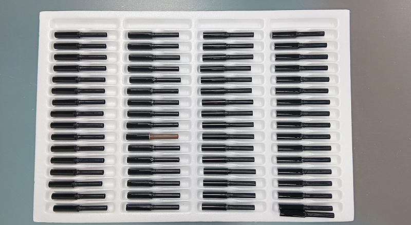 2、組裝環(huán)節(jié):在組裝環(huán)節(jié),生產(chǎn)線通過機(jī)械臂、傳送帶、自動定位系統(tǒng)等自動化設(shè)備,將筆尖,筆帽、、筆桿、彈簧、立柱等零部件進(jìn)行組裝,完成眼線筆的制造。