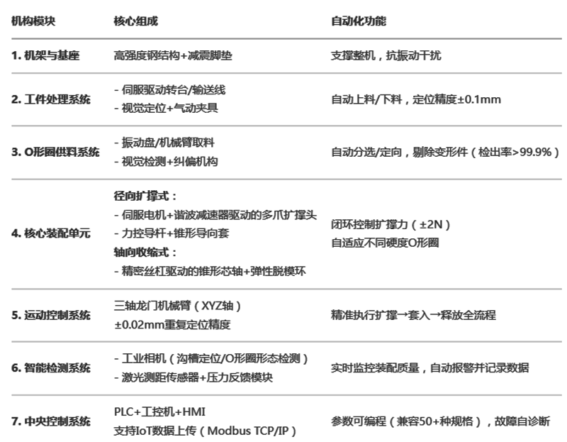 提示:建議配合O形圈預處理設(shè)備(如冷凍收縮柜)使用,可進一步降低裝配力30%。設(shè)備需在溫度23±2℃、濕度40-60%RH的潔凈車間運行,避免橡膠件老化。此設(shè)計適用于汽車油封、風電法蘭、航天密封環(huán)等大型O形圈裝配場景,投資回報周期通常≤18個月。